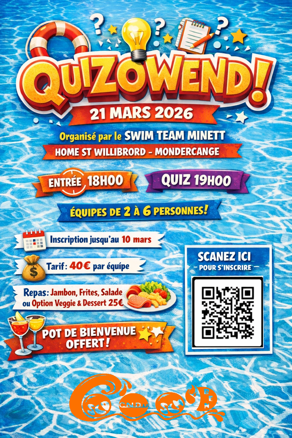 Le Swim Team Minett a le plaisir de vous inviter à une soirée Quiz conviviale et pleine de défis 🧠✨